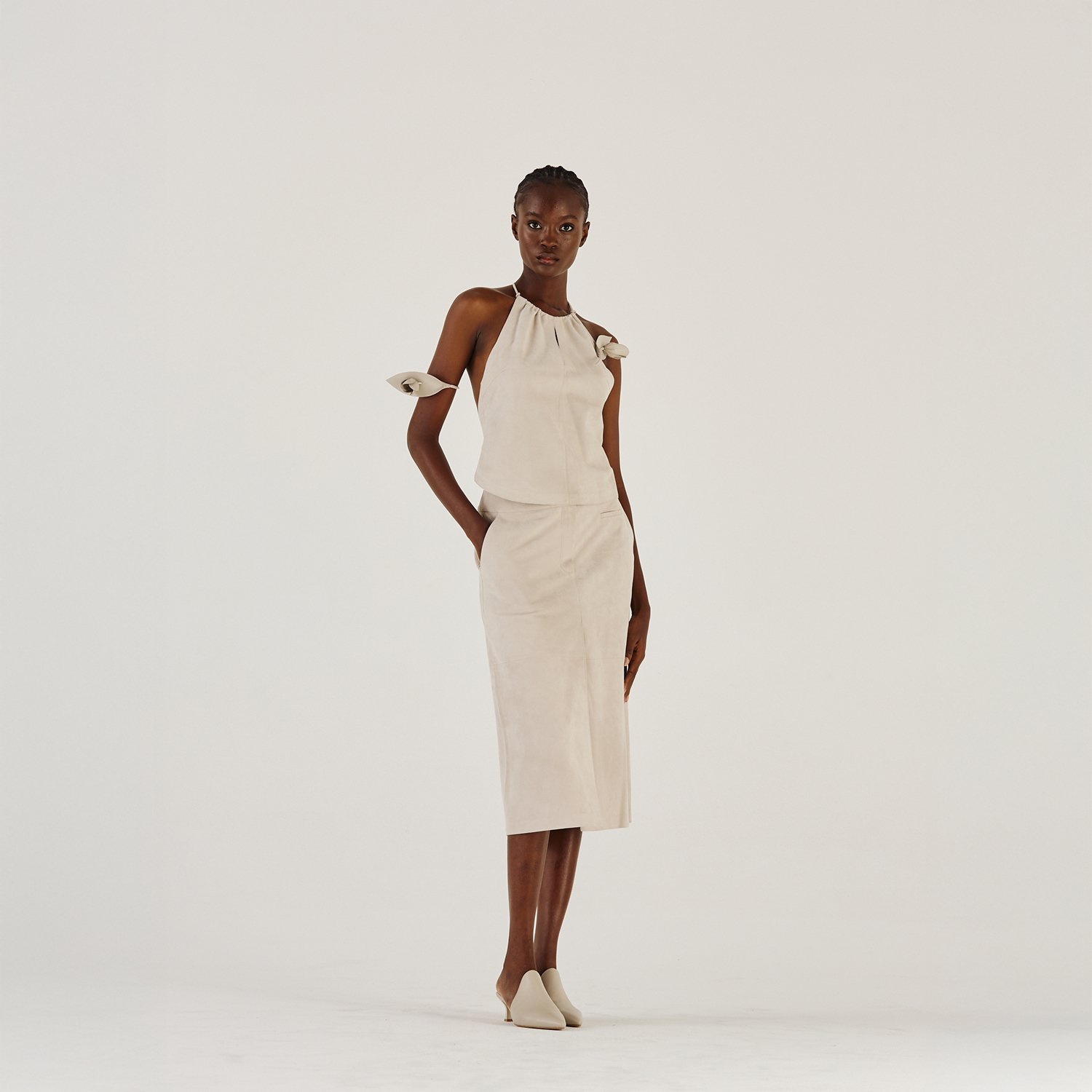 Apron top in medium suede with nappato